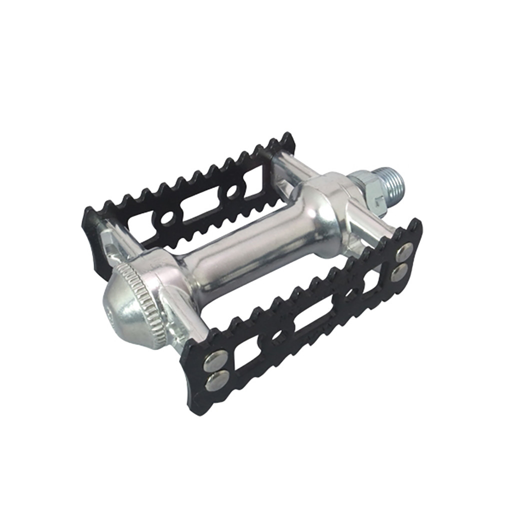 The Sylvan pedals are finished with a silver pedal body around a chrome plated axle, and are available with silver or black anodized cage plates.