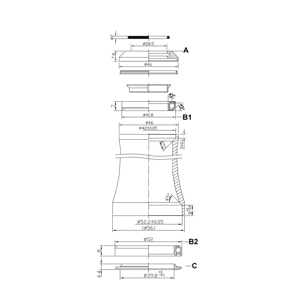 High quality sealed bearing intergrated headset to fit tapered frames.